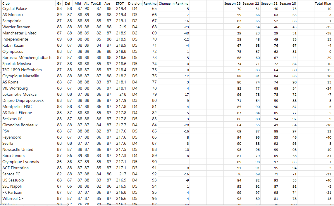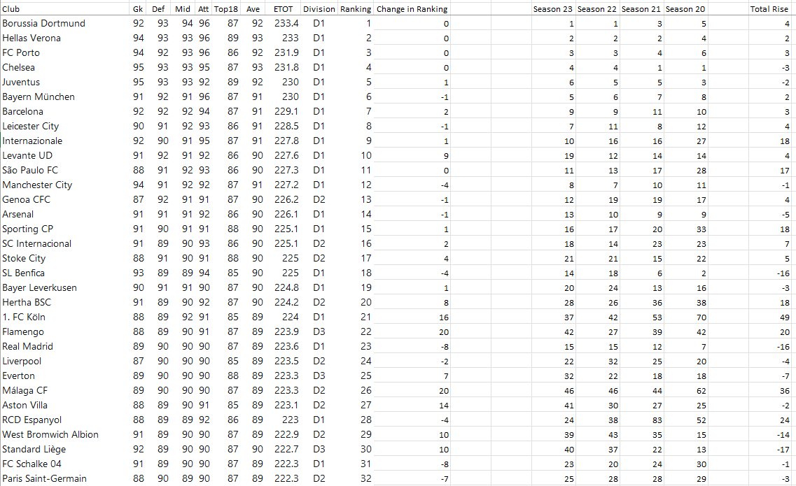 This post comes with the usual caveats: it’s for fun, we’re on the verge of rating updates so this is a point in time look at power rankings. And a shout out to Malcolm on whose data this is based. Over time, I do think it reflects a manager’s impact on the team – which managers can improve their teams v. which sink them or abandon ship to new pastures. The top 5s are comparing last season to this season, and season 20 to now (since that’s when I joined – I think) Without further ado…