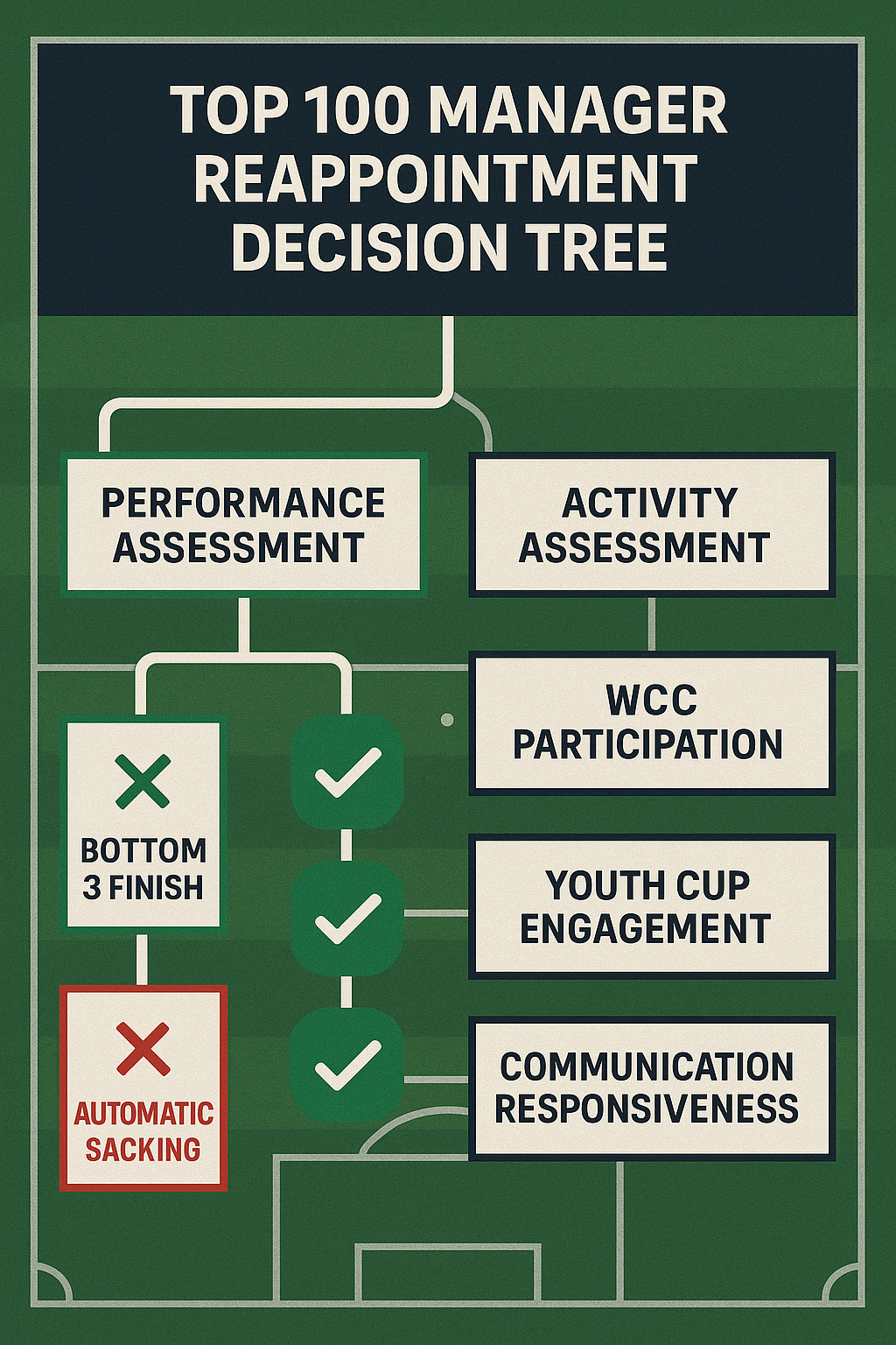 The decision not to reappoint João Alves, while personally difficult given his remarkable journey and gracious response, upholds the community standards that make Top 100 special. These standards apply equally to all managers, with higher expectations naturally accompanying the prestige of managing elite D1 and D2 clubs.