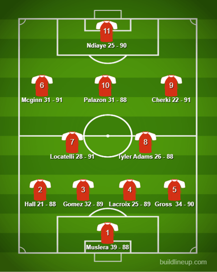 Behind the striker plays Isi Palazon 88, who isn’t a long term solution for our team but he’s a very safe 88 for the upcoming seasons and always puts in a shift.Up front we have Illiman Ndiaye 25/90, recently crowned African champion with Senegal. He just joined our club recently and we can’t wait to see his goals and impact next season.