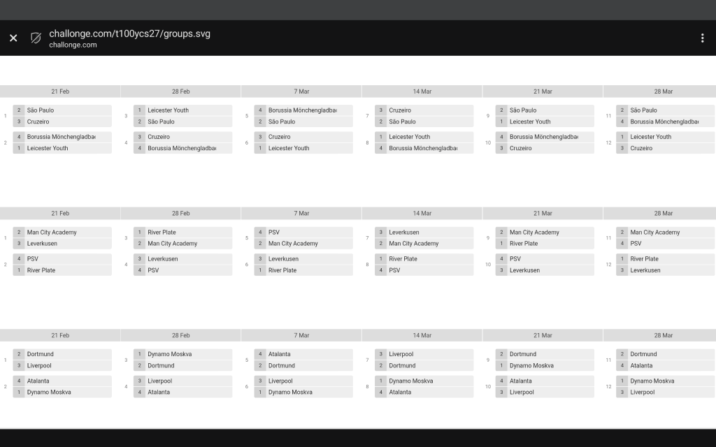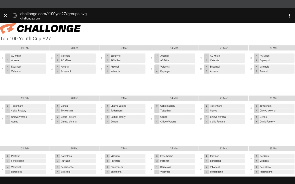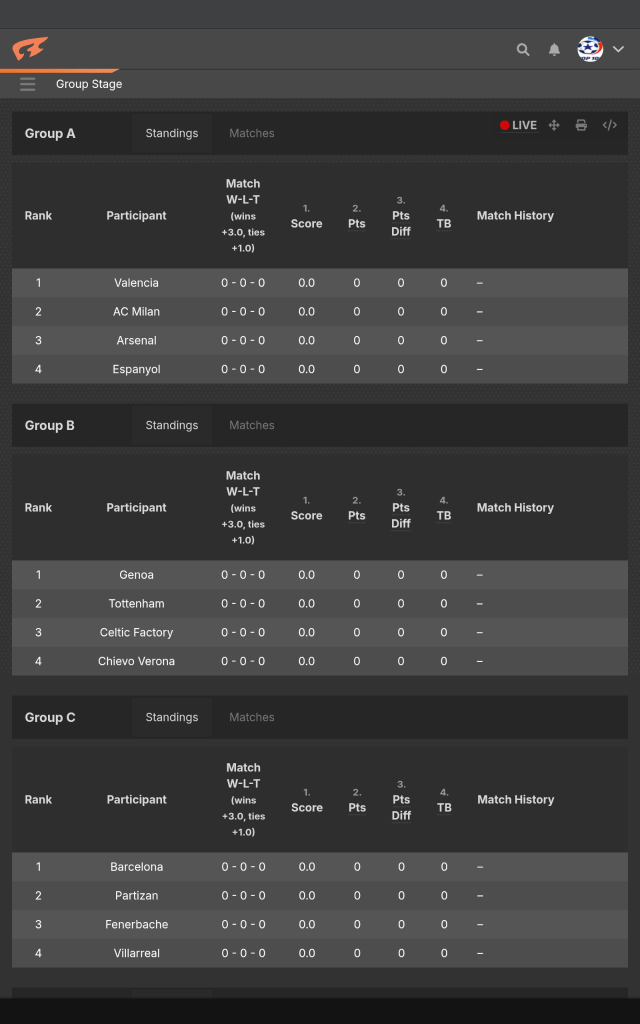 Full tournament groups and fixture schedule on Challonge.com as usual.