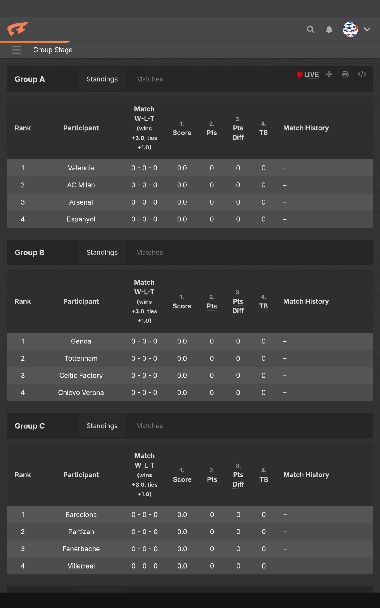 Full tournament groups and fixture schedule on Challonge.com as usual.