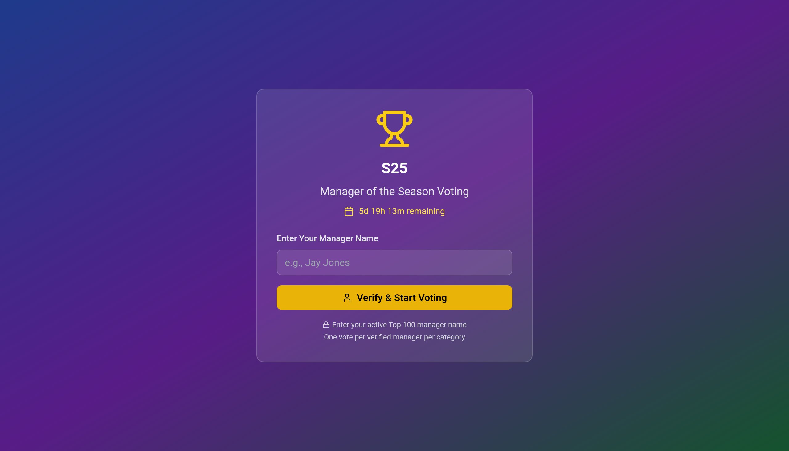 You should then be able to vote in the SEVEN different categories for overall manager of the season, MotS for each division, and finally a special Cup Excellence category for success in our cup competitions.